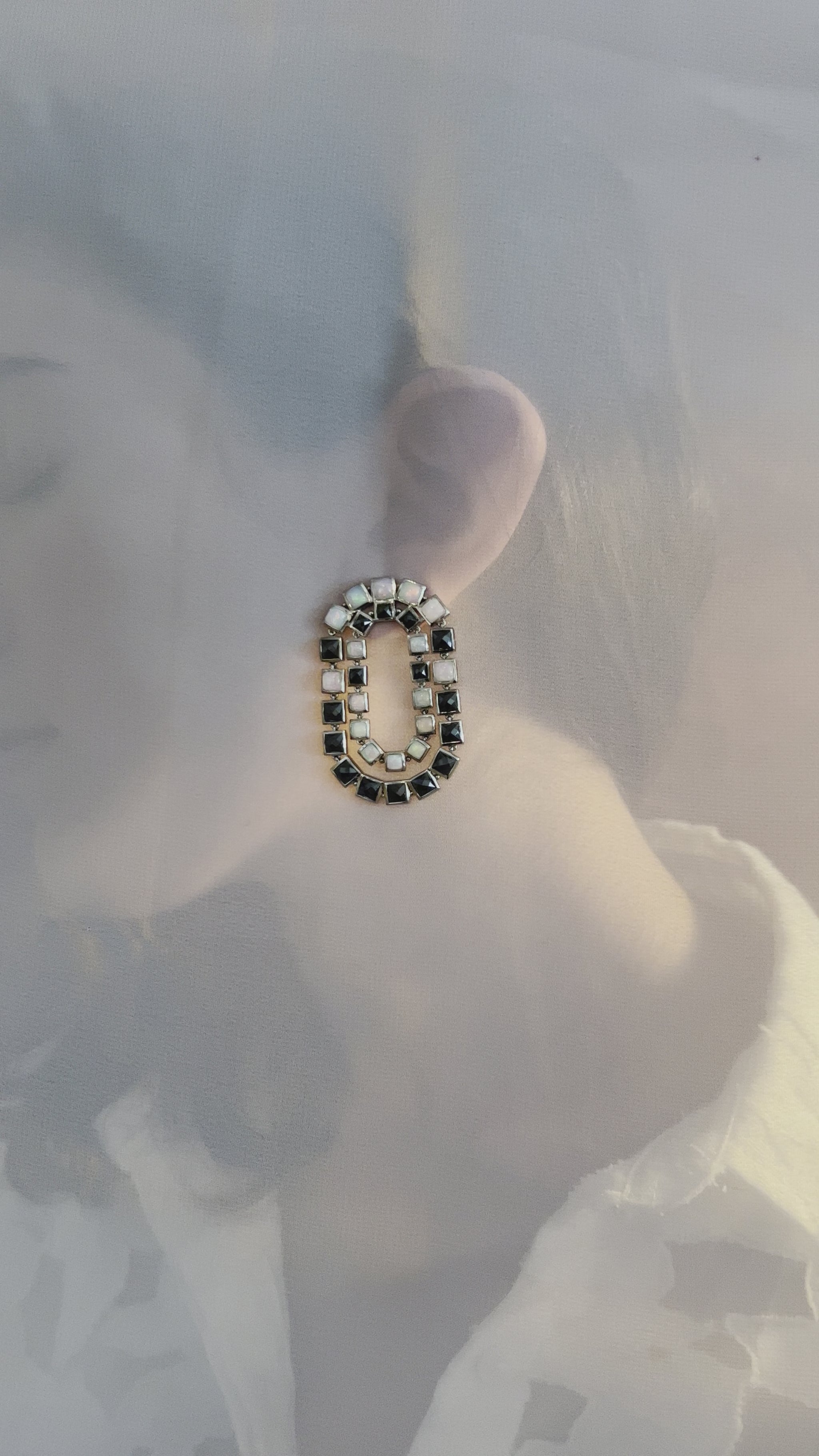 Double Loop Earrings - Black Spinel & Ethiopian Opal