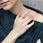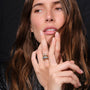 Also shown stacked with the Twist and Tie Oval Solitaire Ring and the Nestled Solitaire Ring