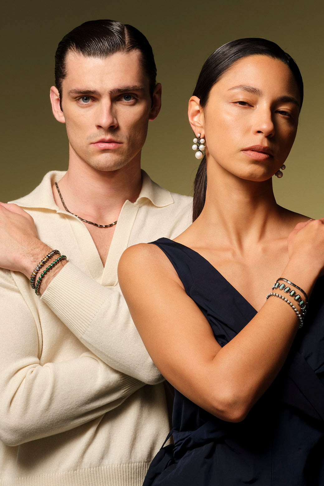 White pearl, black sheen moonstone