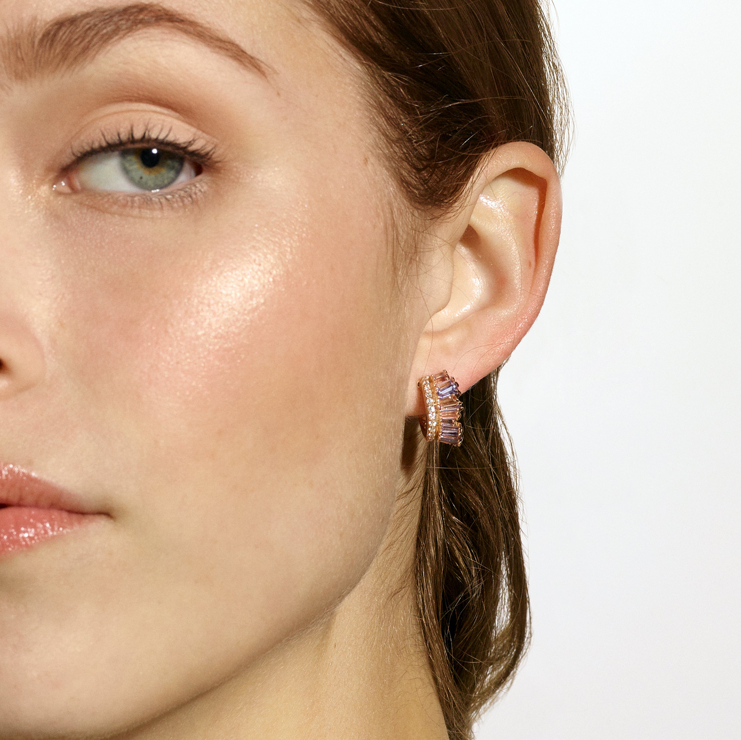 Petite Ruched Hoops - Tanzanite & Diamond Pavé