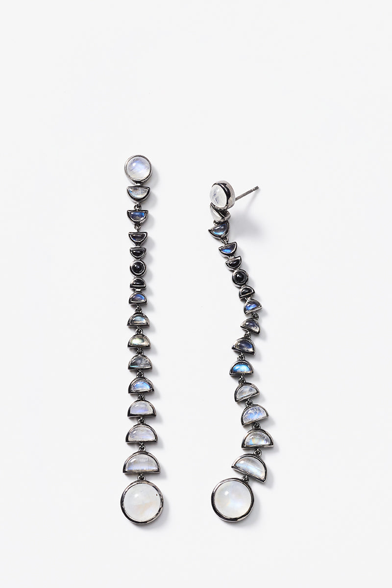 Metronome Earrings - Rainbow Moonstone, Black Spinel & Labradorite